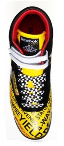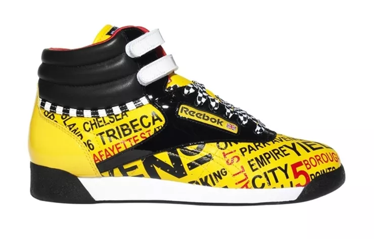 Reebok Freestyle New York to powiew wolności spleciony z siłą przebicia. Na klasycznym kształcie buta nadrukowano żółte tło z nazwami nowojorskich ulic i znakami drogowymi. Czarna cholewka oraz sznurowadła w szachownice dopełniają nowatorstwo i odwagę designu. Czarnobiały pasek u podstawy cholewki przypomina pasy malowane na ulicach. Dzięki temu wszystkiemu but wypełniony jest ruchem miasta, jego szybkością i dźwiękami. Całość przywołuje skojarzenia z nowojorskimi taksówkami. Jest dynamiczna i zaskakująca jak Nowy Jork.