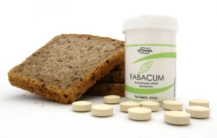 Preparat Fabacum – Vitana to neutralizator skrobi. 2 tabletki preparatu neutralizują 2250 kcal skrobiowych pochodzących z pokarmów takich jak: makaron, ziemniaki, kasze, chleb, ryż i kukurydza. Fabacum zawiera Fasolaminę 2250, w pełni naturalny ekstrakt z białej fasoli neutralizujący skrobię. 1 g ekstraktu czyli 2 tabletki Fabacum neutralizują równowartość 450 g spaghetti. Fasolomina neutralizując skrobię sprawia, że prawie nie ulega ona trawieniu w przewodzie pokarmowym a kalorie z niej pochodzące nie są wchłaniane. Dzięki temu bez żadnych obaw można jeść wysokoskrobiowe produkty nie martwiąc się o kalorie z nich pochodzące. Fabacum zalecany jest osobom, które w sposób naturalny i skuteczny chcą zmniejszyć masę swojego ciała. Jeżeli uwielbiasz ziemniaki, makaron chleb itp. a chcesz pozbyć się zbędnych kilogramów bez skrobiowych wyrzeczeń Fabacum - neutralizator skrobiowych kalorii jest idealny dla ciebie.