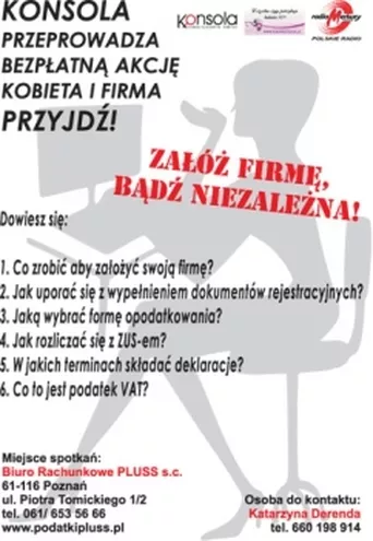 Spotkania organizowane są w Poznaniu, w biurze Rachunkowym PLUSS, przy ulicy Piotra Tomickiego 1/2. Osoba, z którą należy się skontaktować jest p. Katarzyna Derenda (nr tel. 660 198 914).