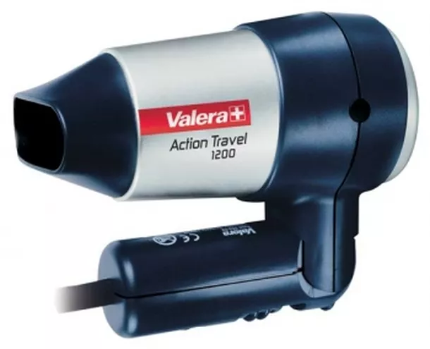 Suszarka Action Travel jest niewielka, ma składaną rączkę i własne etui. Z łatwością zmieści się nawet do twojej podręcznej torebki. Niewielkie rozmiary kryją w sobie nadspodziewanie duże moce – suszarka ma aż 1200W. Specjalnie zaprojektowany uchwyt, za który możesz ją łatwo zawiesić na wieszaku na ręczniki, ułatwia korzystanie z suszarki. Dwa stopnie przełączenia nawiewu i temperatury dopełniają całości. Wysoka szwajcarska jakość daje niezawodność.