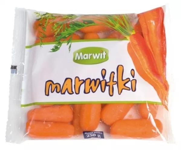 Marwitki to specjalnie pocięte i ukształtowane marchewki ze specjalnie wyselekcjonowanego gatunku marchwi o dużej zawartości ß-karotenu (prowitaminy A). Bez dodatków, nie poddane obróbce cieplnej. Surowe, pyszne i gotowe żeby je chrupać. Są pyszne i zdrowe. Idealne jako przekąska w ciągu dnia lub jako dodatek do dań, surówek i sałatek. Opakowane w przezroczystą folię, przez którą konsument może ocenić jakość i wielkość marchewek. Dodatkowo na nowych opakowaniach producent podaje informację dotyczącą sposobów spożywania produktu, jak i wartości odżywcze. Zawartość kalorii w 100 gramach Marwitek to zaledwie 40 kcal. Pełne witamin i niskokaloryczne Marwitki, poznasz w sklepie po charakterystycznym logotypie firmy MARWIT utrzymanym w kolorze jasnej zieleni.