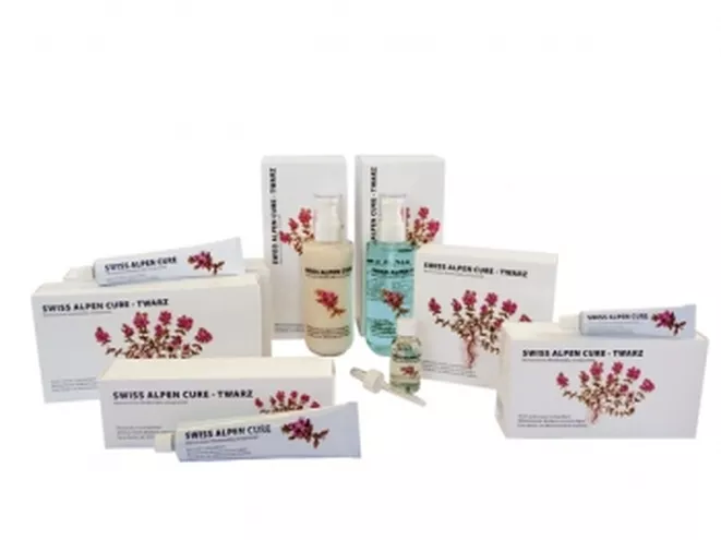 SWISS ALPEN CURE to kosmetyki do pielęgnacji twarzy, pomagające w redukcji najczęstszych problemów skórnych (nawilżanie, zmarszczki, skłonność do trądziku). Do ich produkcji użyto fitoekstrakty wyizolowane z roślin alpejskich (dziki ślaz, babka lancetowata, tymianek), fitoekstrakt z szarotki alpejskiej oraz wodę pochodzącą z lodowców z Alp Szwajcarskich. Ekstrakty roślinne są dodatkowo wzmocnione przez preparat (booster), którego skład chroniony jest szwajcarskim patentem.