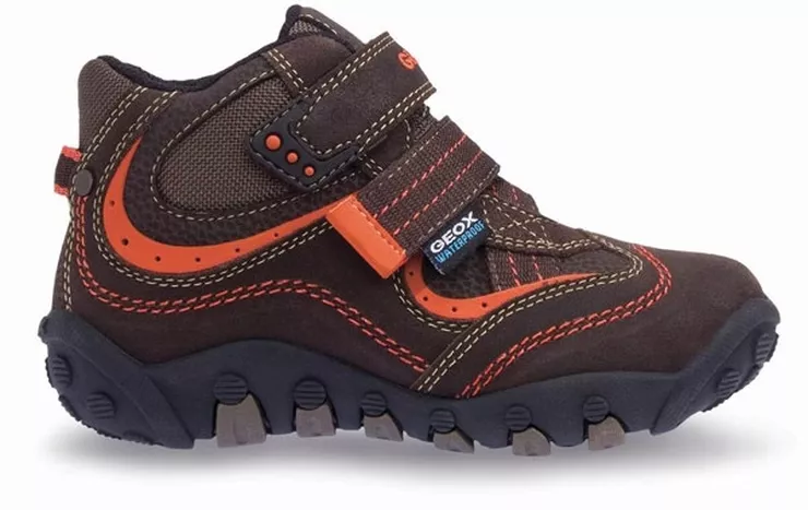 Dzieci potrzebują dużo ruchu. Jeśli mamy tylko trochę czasu, warto spędzić go z maluchem na świeżym powietrzu. W ten sposób zadbamy o odpowiedni rozwój psychomotoryczny dziecka i zdrowie naszej pociechy. Jesienna aura nie musi stanowić ku temu przeszkody. Wystarczy tylko zatroszczyć się, by buciki były wygodne, a stópki odpowiednio chronione przed zimnem i wilgocią. Na takie okazje Geox proponuje buty sportowe w ciemnych kolorach brązu i czerni, odpornych na zabrudzenia. Kolorowe paseczki, dobrze widoczne na ciemnym tle, oraz faliście wygięte linie i liczne przeszycia nadają tym bucikom atrakcyjności.