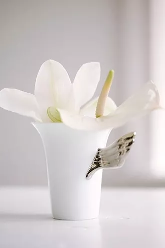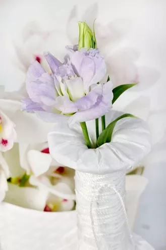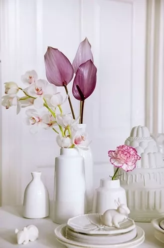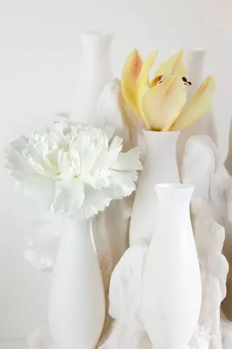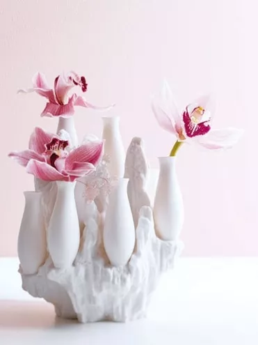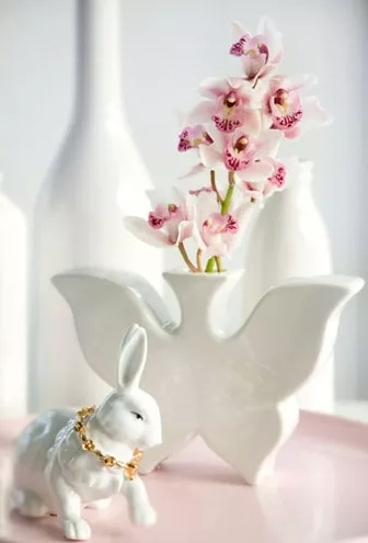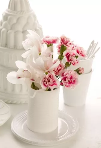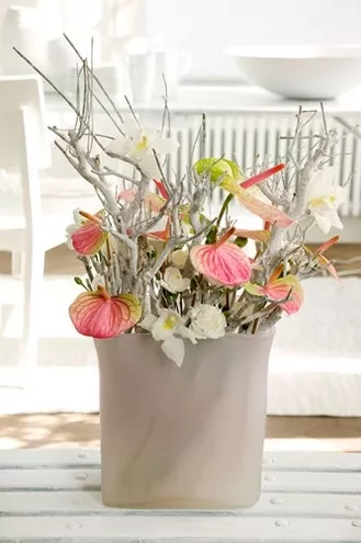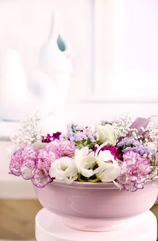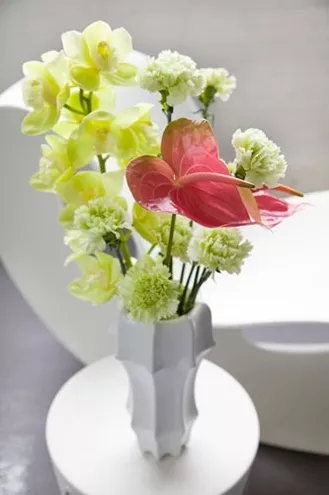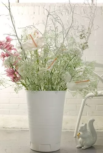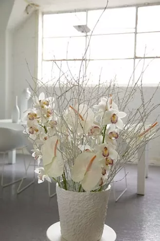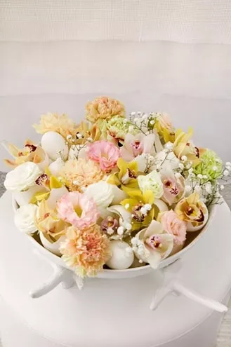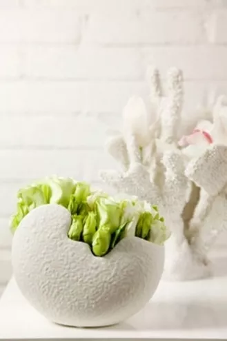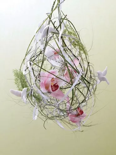 Kompozycje utrzymane w stylu nowoczesnym mają na celu pobudzenie wyobraźni. Są to często przestrzenne formy, w których dominuje biel z delikatnym akcentem różu i pistacji. Naczynia, w których są zaaranżowane mają oryginalne kształty.