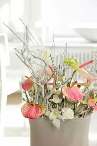 Tej zimy obok wspomnianego storczyka królują goździk (Dianthus), anturium (Anthurium), gipsówka (Gypsophila), zatrwian (Limonium) oraz eustoma (Eustoma).