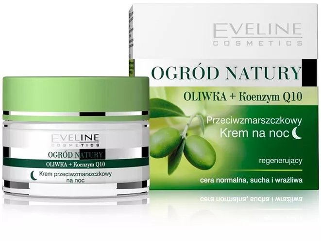 OGRÓD NATURY Przeciwzmarszczkowy krem na noc Oliwka + Koenzym Q10 (do cery normalnej, suchej i wrażliwej) przeznaczony jest do codziennej pielęgnacji skóry twarzy. Wyjątkowe połączenie szlachetnych wyciągów roślinnych o właściwościach wygładzających i liftingujących, efektywnie porządkuje strukturę włókien kolagenu i elastyny. Dzięki systematycznemu stosowaniu preparat zapobiega powstawaniu nowych i dodatkowo redukuje już istniejące zmarszczki mimiczne i grawitacyjne, a cera nabiera zdrowego kolorytu i jędrności.