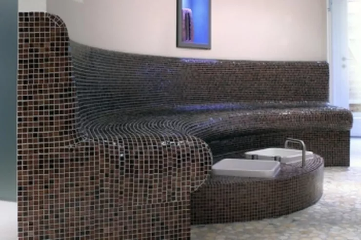 Wszystkie elementy wykorzystywane do budowy ław Wedi, wykonane są z wodoodpornej płyty budowlanej wedi o grubości 80 mm. Produkty te są całkowicie wodoodporne, co sprawia, że doskonale sprawdzają się w pomieszczeniach o podwyższonej wilgotności. Płytki ceramiczne (mozaikę) można układać bezpośrednio na powierzchni mebli. Dla podwyższenia komfortu, system ław może być ogrzewany elektrycznie lub ciepłą wodą.