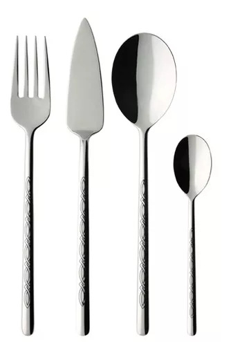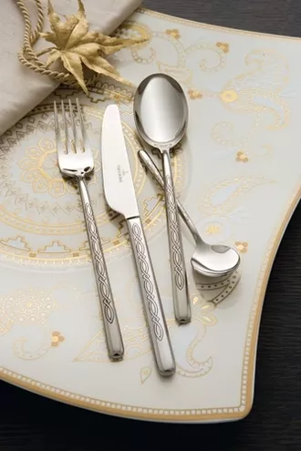 Aby zastawa "New Wave Premium Samarah" była kompletna Villeroy&Boch stworzył nowy wzór sztućców wykorzystując popularny już kształt "Ella". Dyskretny wzór zaprojektowany na bazie tradycyjnego wzoru malowanego henną doskonale komponuje się na smukłych trzonkach eleganckich sztućców "Ella". Geometryczne wzornictwo świetnie kontrastuje z bogactwem form na porcelanie. Wyjątkowym elementem jest wzór na nożu umieszczony po obu stronach trzonka.