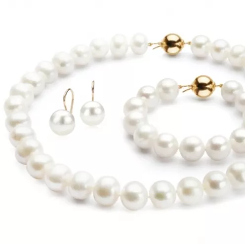 Komplet: naszyjnik, bransoleta, kolczyki (perły, złoto próby 0,585)