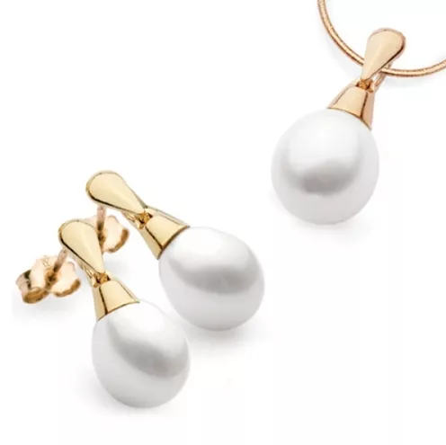Komplet: kolczyki, zawieszka (perły, złoto próby 0,585)