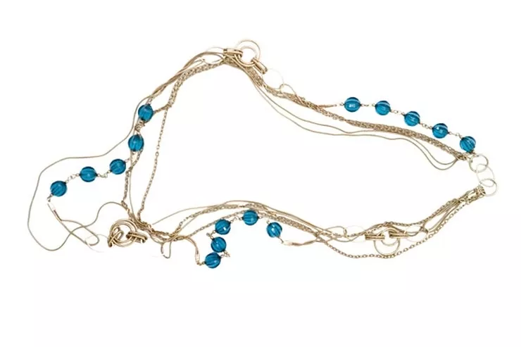 Srebrny wisiorek przeplatany niebieskimi koralikami - zawieś na jej szyi kawałki błękitnego nieba.