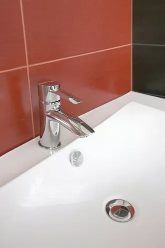 Taka nuta kolorystyczna ożywia, ale nie męczy wzroku, daje sygnał do działania, ale także znosi negatywny nastrój i wprowadza harmonię. We wnętrzu dominują zgeometryzowane formy na motywie prostokąta wpisane w poziome i pionowe podziały ścian oraz w bryły urządzeń ceramicznych. Wanna, umywalka, toaleta i bidet urzekają przemyślaną geometrią i są prawdziwą ozdobą pomieszczenia, ale nie jedyną. Na uwagę zasługuje armatura. Lekkie opływowe kształty baterii Monza z kolekcji Ferro, miękka, plastyczna, zaokrąglona linia, doskonale wyważone proporcje świetnie korespondują z oszczędną formą ceramiki. Wylewki baterii skłaniające się ku naczyniom są zapowiedzią orzeźwiających kropel.