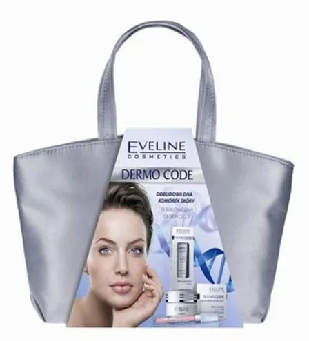 Seria kosmetyków Dermo Code powstała specjalnie z myślą o kobietach po 35 roku życia. Dermo Code, to kompleksowy program przeznaczony do pielęgnacji cery dojrzałej. Zawarty w preparacie Aldenine jest pierwszym w kosmetologii składnikiem molekularnym, likwidującym mikrouszkodzenia skóry na poziomie komórkowym, stymuluje „młodzieńczy” kolagen III oraz aktywnie chroni cerę przed starzeniem się. Krem sprawia, że skóra jest elastyczna, dobrze nawilżona, doskonale wygładzona i promienna. Zestaw świąteczny jest dostępny w efektownej, srebrnej kosmetyczce.