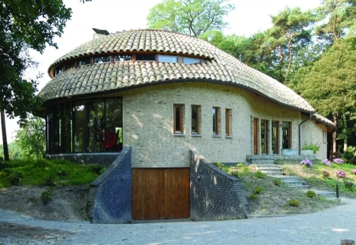 Dom mieszkalny w miejscowości Teteringen, w południowo-zachodniej Holandii, powstał z dziecięcych marzeń. Budynek wygląda jak ogromny grzyb pośrodku lasu, a jego wybrzuszony dach podobny jest do skorupy żółwia. Konstrukcja nośna wykonana została z dębowych pni, dzięki czemu w przeszklonym salonie "rosną" drzewa. Przebywając w głównym pomieszczeniu domu odnosi się wrażenie, że natura zza okna "niemal" wchodzi do środka.