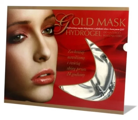 Hydrożelowa maska kolagenowa z płatkami złota i koenzymem Q10 oraz kompleksem peptydowym HydroGel Gold Mask dzięki podwyższonej zawartości kolagenu uelastycznia, ujędrnia i zwiększa wytrzymałość skóry. Poprawia też jej pigmentację i powstrzymuje procesy powstawania zmarszczek, redukuje także te już powstałe. Zawarte w masce płatki złota dzięki aktywnym składnikom w optymalny sposób przenikają do głębszych warstw skóry, poprawiając jej kondycję oraz pobudzając naskórek do odnowy.