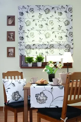 Roleta rzymska Padva z kolekcji Luna to idealna propozycja dla zwolenników prostych rozwiązań. Delikatny, kwiatowy wzór w stonowanych kolorach będzie doskonale pasował do pomieszczeń, które chcemy optycznie powiększyć - kuchni oraz pokoju dziennego. Tkanina wykonana w 100 % z naturalnej bawełny, wykorzystana w kolekcji Luna, zapewni piękno rolety przez bardzo długi czas.