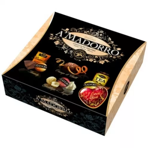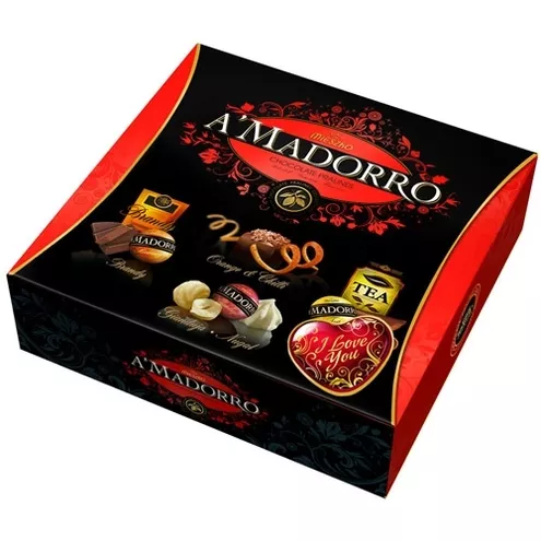 Doskonałym prezentem na święto zakochanych jest nowość firmy Mieszko – ekskluzywna bombonierka A’MADORRO. Eleganckie pudełko z pralinkami to połączenie czerni, oryginalnych ornamentów
