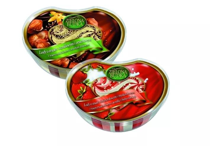 Wyjątkowe desery dostępne są w dwóch propozycjach smakowych, cieszących się największym zainteresowaniem klientów: śmietankowo-truskawkowej i waniliowo-orzechowej. Lodowe serce ukryte jest w połączeniu lodów śmietankowo-truskawkowych z sosem truskawkowym i wiórkami białej czekolady lub kompozycji lodów waniliowo-orzechowych z sosem czekoladowym i kruszonymi orzechami. Desery dostępne są w eleganckich opakowaniach w kształcie serca z zamkiem bezpieczeństwa, gwarantującym świeżość produktów. Wykwintnie skomponowane lody mogą być gotowym deserem lub stanowić punkt wyjścia do przygotowania własnego słodkiego poczęstunku. Specjalnie z myślą o wszystkich zakochanych, mistrzowie firmy Zielona Budka przygotowali propozycje pysznych walentynkowych deserów, które staną się dopełnieniem romantycznej kolacji.
