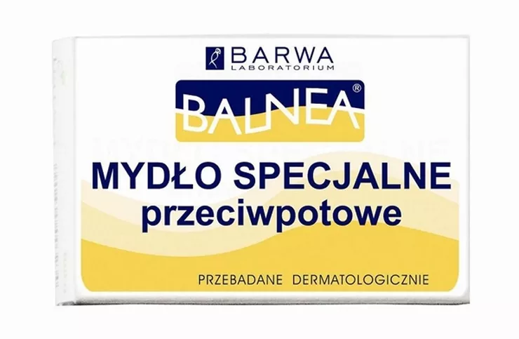 Mydło specjalne Balnea przeciwpotowe przeznaczone do codziennego mycia i pielęgnacji całego ciała u osób z tendencją do nadmiernej potliwości, intensywnie pracujących, aktywnych fizycznie, sportowców. Zmniejsza potliwość skóry oraz neutralizuje nieprzyjemny zapach poprzez działanie antybakteryjne substancji czynnych: Alcloxa i Triclosan. Jego regularne stosowanie zapewnia czystość i świeżość przez cały dzień. Szczególnie przydatne latem.