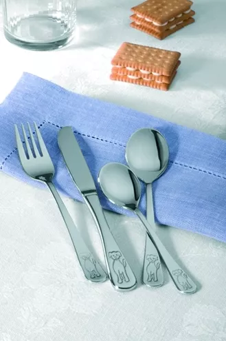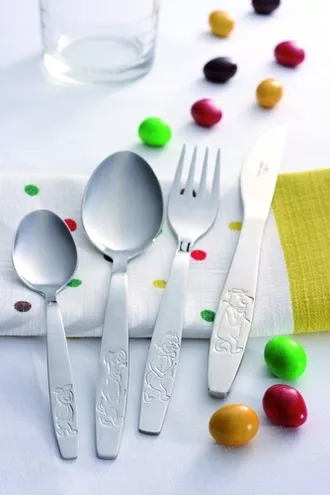 Sztućce można nabyć w kompletach 4 elementowych: nóż obiadowy, widelec obiadowy, łyżka obiadowa i łyżeczka.Wszystkie modele zdobione są rysunkami postaci z ulubionych bajek – szczególnie zainteresowaniem dzieci cieszy się model A petit dodatkowo zdobiony wypukłymi, kolorowymi figurkami przypominającymi słodkie żelki. Model ten ze względu na oryginalny dekor zaleca się myć ręcznie, pozostałe można czyścić w mechanicznych zmywarkach. Wszystkie komplety dobrze się sprzedają. Model Am-am jest w sprzedaży od kilkunastu lat, A petit i Bon Ton od 3 lat.