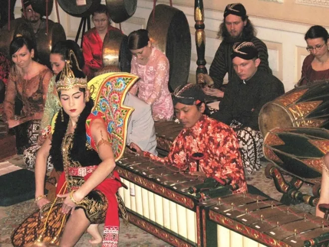 Gamelan to tradycyjna orkiestra towarzysząca tańcowi oraz teatrowi wayang. Jest jednym z najbardziej reprezentatywnych elementów kultury indonezyjskiej. Muzyka gamelanowa popularna jest nie tylko w Indonezji, ale również w Europie Zachodniej i Ameryce Północnej, a Warszawska Grupa Gamelanowa jest jedynym tego typu zespołem w Polsce. W repertuarze ma muzykę jawajską, z czego większość stanowią utwory towarzyszące tańcom.