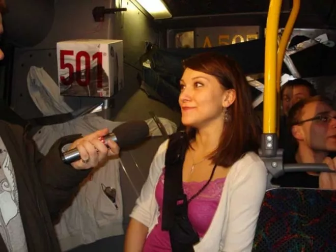 Ten, kto chciał skorzystać z roztańczonego środka transportu – musiał się WYSPOWIADAĆ (!)przed kamerą odpowiadając na pytanie: „Co dla ciebie znaczy hasło "LIVE UNBUTTONED. Żyj bez zapięć". Wyznania klubowiczów były zaskakujące, nie zabrakło szokujących zwierzeń, jak i osób chętnych do... rozpinania swoich spodni! Ekipa prowadząca całą imprezę miała nietypową okazję oglądania męskiej i damskiej bielizny ;-). Autorzy najbardziej zaskakujących odpowiedzi dostali w nagrodę spodnie Levisa.