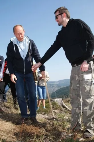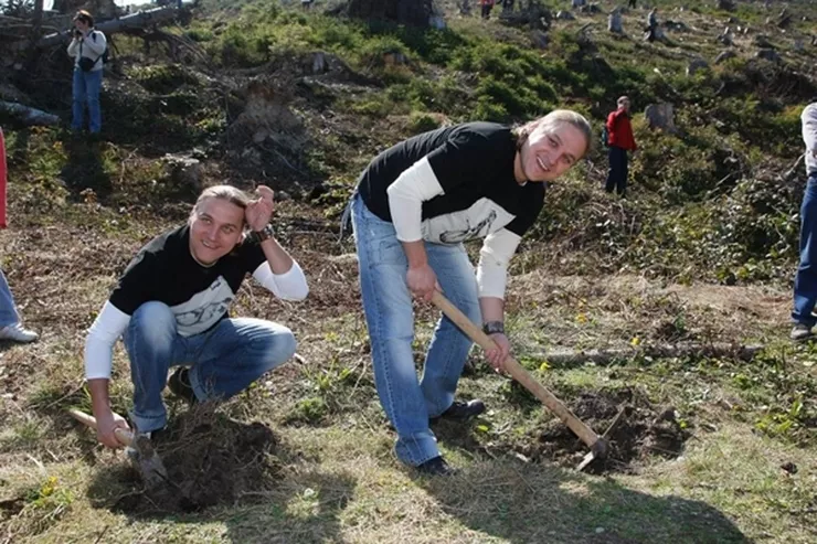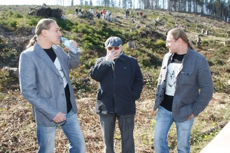 Dorota Wellman, Marcin Prokop, Weronika Marczuk-Pazura, bracia Golec, Kazimierz Kutz sadzą drzewa na Żywiecczyźnie