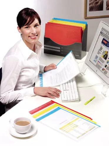 W skład kolekcji DESK FREE wchodzą produkty, które używane są w biurze praktycznie każdego dnia: klipsy z indeksem, ofertówki poziome i pionowe, teczki oraz organizer. Wszystkie produkty wzajemnie się uzupełniają, choć z powodzeniem mogą być używane osobno. Kolekcja DESK FREE wykorzystuje trzy doskonale widoczne i rozróżnialne kolory – żółty, czerwony i niebieski. Badania nad ludzką percepcją dowodzą, iż najefektywniejsze jest zastosowanie trzech kolorów – wystarczają one do oznaczenia najważniejszych obszarów działalności, a przede wszystkim są łatwe do zapamiętania i rozróżnienia. Zdaniem ekspertów Esselte kolekcja DESK FREE to jedna z najlepszych metod utrzymania porządku na biurku i w biurze oraz pierwszy krok do usystematyzowania papierów i dokumentów w codziennej pracy.Podstawowa zasada wykorzystania kolekcji DESK FREE opiera się na wyborze systemu kolorystycznego i konsekwencji jego stosowania. Polega na przypisaniu określonego koloru do wybranego projektu, klienta bądź oznaczenia ważności czynności do wykonania, np. sprawy bardzo ważne (kolor czerwony), umiarkowanie ważne (kolor niebieskie) oraz takie, które można odłożyć na później (kolor żółty).Funkcjonalność i użyteczność produktów tworzących kolekcję DESK FREE polega na ich prostocie i uniwersalności, a dodatkowym atutem jest szerokie spektrum produktów dostosowanych do różnorodnych przyzwyczajeń i narzędzi wykorzystywanych w codziennej pracy. W zależności od oczekiwań i charakteru pracy produkty DESK FREE zawsze doskonale sprawdza się przy archiwizacji dokumentów podręcznych, niezależnie od użytkowanego systemu przechowywania dokumentów podręcznych – leżących kuwet bądź stojących otwartych pojemników. Kolekcję DESK FREE tworzą:1. Ofertówki z kolorowym brzegiem - pionoweProdukt dla użytkowników systemu kuwetowego. Ofertówki (rodzaj koszulki na dokumenty, która łączy w sobie także zastosowanie teczki) z kolorowym systemem wymiennych opisów pozwalają nie tylko dobrze i w widoczny sposób oznaczyć dokumenty, ale również umożliwiają wielokrotne wykorzystanie ofertówek – wystarczy wymienić indeks i ponownie go opisać. Odnalezienie właściwego dokumentu jest niezwykle proste – wystarczy delikatnie unieść brzeg ofertówki gdzie znajduje się indeks – posiada ona w tym miejscu perforację, która ułatwia „podglądanie” opisów na indeksach. Tak posegregowane dokumenty są łatwe do odnalezienia na każdym biurku.Ofertówki wykonane są z mocnej folii polipropylenowej.2. Ofertówki z kolorowym grzbietem - poziomeProdukt dla użytkowników preferujących przechowywanie dokumentów w systemie stojących, otwartych pojemników. Dzięki wymiennym, kolorowym grzbietom dokumenty umieszczone w poziomej ofertówce i ustawione w pojemniku będą doskonale widoczne.Ofertówki wykonane są z mocnej folii polipropylenowej.3. Klipsy z etykietą do wielokrotnego opisuIdealnym rozwiązaniem do oznaczania aktualnie używanych dokumentów są klipsy z indeksem. Wystarczy spiąć dokumenty kolorowym (czerwonym, niebieskim lub żółtym) klipsem, który należy odpowiednio opisać, a gdy jest potrzebny do innych celów, to wykonany długopisem kulkowym napis można z łatwością zmazać zwykłą plastikową gumką. Dokumenty opisane w ten sposób są również doskonale widoczne w stojących pojemnikach.4. Teczki kartonoweKolorowe teczki kartonowe o wymiarach pozwalających na swobodne umieszczenie w nich ofertówek z indeksami i wygodne zamknięcie. Na stronie frontowej posiadają miejsce do opisu zawartości. Zaprojektowane na zasadzie poziomej koperty, teczki można umieścić również w specjalnym organizerze. Teczki wykonane są z grubego kartonu.5. Organizer na biurkoStabilny, kartonowy organizer to doskonały produkt do przechowywania teczek i ofertówek DESK FREE. Dzięki specjalnej schodkowej konstrukcji opis każdej teczki jest doskonale widoczny. Organizer łączy również zalety archiwizacji zawieszanej, bowiem umieszczone w teczkach podręczne dokumenty są przejrzyście skatalogowane i można je z łatwością odnaleźć, bez konieczności ich wyjmowania.