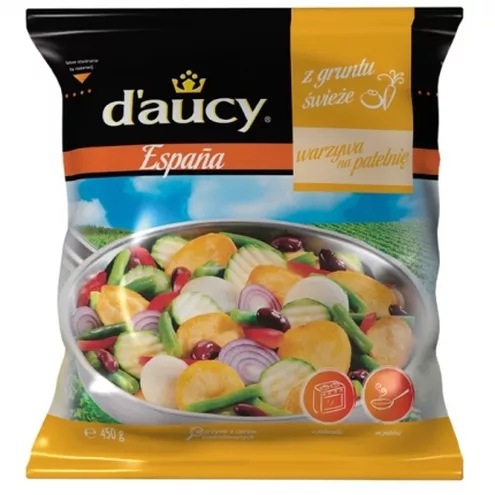 Wspólną cechą charakterystyczną dla wszystkich odmian kuchni hiszpańskiej są dania proste i pełne smaku, doprawiane świeżymi ziołami. Najczęściej używane składniki to: ryby i wszelkiego rodzaju owoce morza, rośliny strączkowe, ryż, pomidory, papryka, ziemniaki, jajka, czosnek, cebula, oliwki, migdały, wino i oliwa z oliwek. Część z tych składników zastosowano w recepturze warzyw na patelnię Espana marki d’aucy. Kompozycja ziemniaków, czerwonej papryki, białej i czerwonej cebuli, cukinii, zielonej fasoli szparagowej oraz ziaren fasoli czerwonej tworzy podstawę do przyrządzenia wielu dań hiszpańskich, w tym na przykład tortilli.