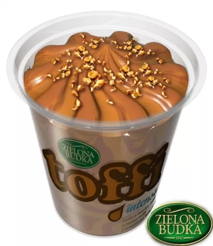 Toffie Intenso to lodowy deser, którym możesz rozkoszować się zawsze, gdy masz ochotę na coś słodkiego - podczas relaksu w domu, przerwy w pracy lub weekendowego spaceru z rodziną. Charakterystyczna cechą lodów jest niezwykły, intensywny smak toffie, który na długo pozostaje w pamięci. Wystarczy raz spróbować wyjątkowych deserów Zielonej Budki, by już zawsze przyjemność kojarzyła się z Toffie Intenso.