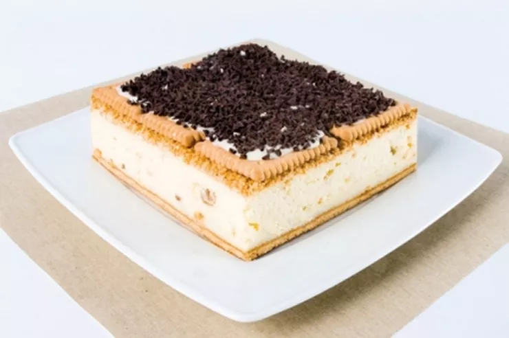 Prostokątną lub okrągłą blaszkę wysmarować tłuszczem i wyłożyć spód herbatnikami Petit Beurre 100g Jutrzenka. Przełożyć masę serową do blaszki.