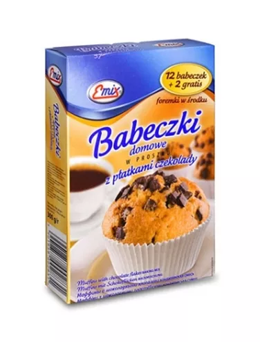 Emix przygotował nowy produkt - babeczki domowe w proszku z płatkami czekolady. Każde opakowanie zawiera bazę gotową do przygotowania 14 pysznych muffinków oraz papierowe foremki. Opakowanie utrzymane w błękitnej, ciepłej kolorystyce z wizerunkiem gotowego wypieku, filiżanki kawy i charakterystycznego logotypu EMIX.