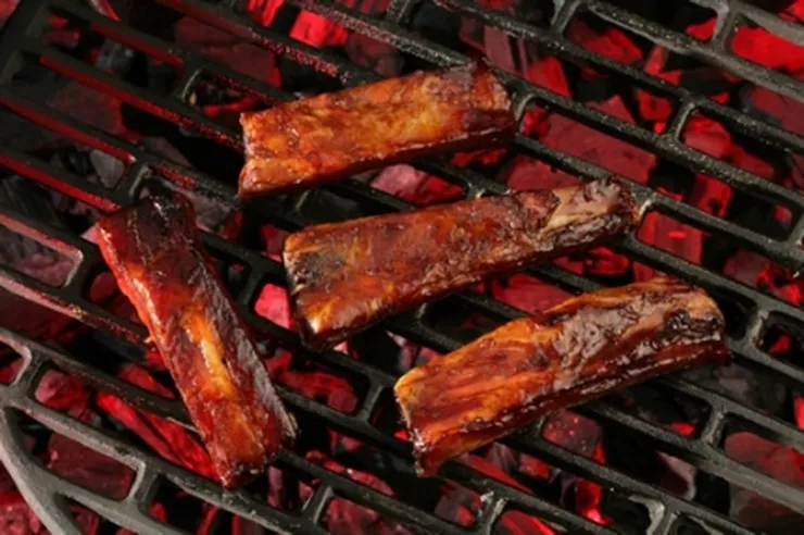 Żeberka umyć, osuszyć i podzielić na porcje. Połączyć składniki marynaty, zalać nią żeberka i odstawić do lodówki na całą noc. Piec na grillu 35 – 45 minut, często obracając.