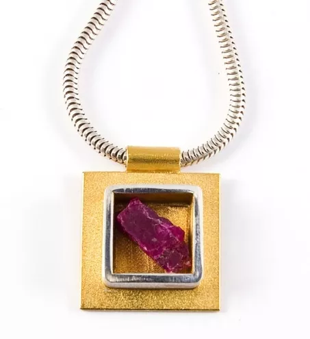 Filozofia Galerii Ambertop jest przedstawienie kamienia w jego naturalnej formie z jak najmniejsza ingerencja w jego strukturę. Tak jest również w przypadku rubinowej kolekcji - nieoszlifowany kamień ma bardziej matowy połysk, nierówna powierzchnie, a kształt jedyny w swoim rodzaju. Projekty skierowane s do kobiet ceniących proste formy w nowatorskim wydaniu. Galeria skierowała swoja propozycje do mężczyzn, dla których proponujemy spinki do mankietów oraz brelok do kluczy. Wszystkie elementy wykonane są ze srebra oraz pozłacanego srebra.