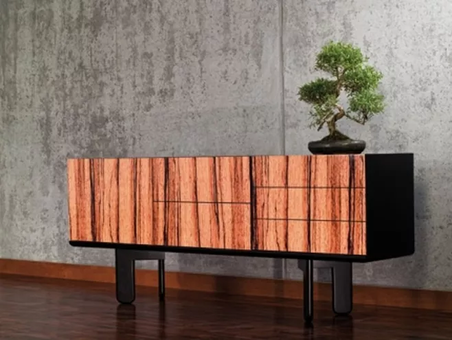 Jako pierwsze w ofercie pojawiły się komody w różnych rozmiarach ozdobione nadrukami przedstawiającymi surowe drewno limby, mahoniu i zebrano. W przyszłości planowane jest rozszerzenie kolekcji o kolejne elementy.