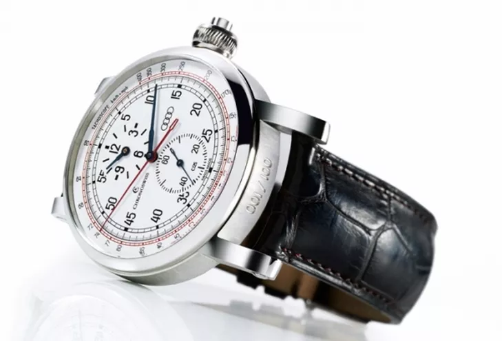 Setna rocznica powstania firmy Audi została upamiętniona limitowaną edycją stu egzemplarzy zegarka Tachoscope wyżej wymienionej manufaktury Chronoswiss. Zegarek przygotowany przez firmę G. Langa nawiązuje do stylistyki instrumentów instalowanych w autach Auto Union z lat 30 ubiegłego wieku. Pasuje to do wskazania czasu typu regulator - nietypowego i bardzo charakterystycznego dla niemieckiej marki zegarkowej. Zegarek wyróżnia się też podziałką tachometru wyskalowaną do zawrotnej prędkości 400 km/h, logo Audi na tarczy i rotorze automatycznego mechanizmu oraz koronką ze zintegrowanym przyciskiem uruchamiającym funkcję stopera. Koperta posiada dwa szafirowe szkiełka i jest wodoszczelna do 30 metrów.