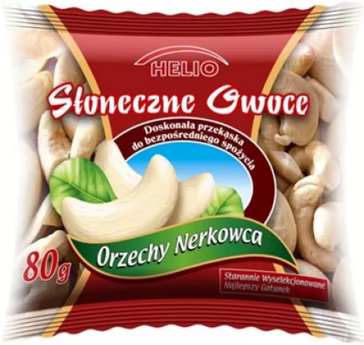 Firma Helioâ, ekspert w świecie bakalii i owoców, jest dystrybutorem orzechów nerkowca. Dostępne w 80 i 300-gramowych poręcznych opakowaniach orzechy, to produkt rekomendowany do wypieków, deserów, jak i bezpośredniego spożycia. Nowy produkt Helio® to starannie wyselekcjonowane orzechy, pakowane do półprzezroczystych, kolorowych opakowań, przez które konsument ma możliwość oceny produktu pod względem jego wielkości, jakości i świeżości.