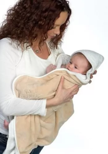 Ręcznik do wytarcia dziecka powinien być wykonany z najwyższej jakości miękkich i naturalnych włókien. W sklepie www.babymama.pl znajdziesz wyjątkowe ręczniki Cuddledry w formie fartucha. Są niezastąpione podczas kąpieli noworodka i chlapiącego się wodą niemowlaka. Mama lub tata zakładają go na siebie jak fartuch. Dzięki temu mają wolne ręce podczas kąpieli i wyjmowania maluszka z wody. Dziecko zaraz po opuszczeniu wanny pozostaje w ramionach rodzica, szczelnie otulone mięciutkim ręcznikiem. Ręcznik posiada również kapturek na główkę, doszyty w dolnym rogu.
