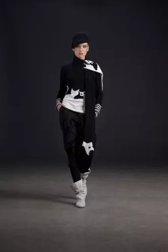To pole do popisu dla dodatków szczególnie toreb w każdej wielkości i całej gamie materiałów – skóra, filc, nylon. Rękawiczki, szale i czapki – eleganckie i stylowe lub nieco zwariowane – wszystko to składa się na mieszankę stylów i trendów dominujących na europejskich wybiegach, a obecnych w kolekcji Solar na jesień – zima 2009/10. Nie ma jednego dominującego motywu – jest bajecznie kolorowo, zmysłowo, i bardzo bardzo kobieco. Jak co sezon zaskakujemy printami - przebojowi jazzmanami, gwiazdy kina lat 50-tych pojawiają się na spódnicach i sukienkach. Intrygujemy „kotami” – zdobią: sukienkę , spódnicę, golf i szalik. Otulamy wełnianymi szalami, proponujemy fantazyjne poncha i eleganckie etole, a pod nimi jedwabne sukienki, siatkowe golfy, tuniki o oryginalnych krojach. Widoczna jest inspiracja stylem Coco Chanel - krótkie żakiety, wąskie spodnie, łańcuszki przy torebkach – kobiecość w męskim stylu, złagodzona miękkością tkanin i kolorem: – pełna gama śliw, cytrynów, surowych zieleni i szarości. Nie zabraknie spódnic z wysokim stanem i sukienek z delikatnej wełny, o prostym kroju, ale za to w intensywnym kolorze royal blue lub amarancie. Aplikacje, sploty, hafty – ozdobione nimi spódnice, sukienki i płaszcze stają wyjątkowe, a i ich niepowtarzalny charakter podkreślamy detalem: kokardą, lamówką lub kolorem przenoszącym w baśniowy świat zimowych dni.