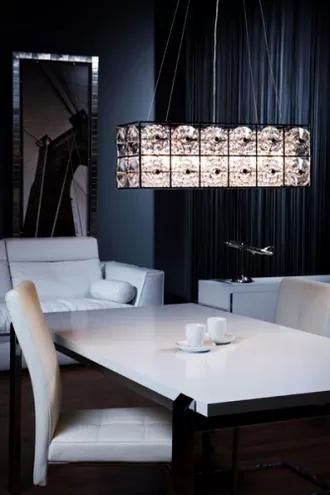 W wielkim stylu powracają kryształy, jednak dzisiejsze wzornictwo odbiega od wszystkiego, co do tej pory zwykliśmy kojarzyć z lampami wykonanymi z tego materiału. Żyrandole i lampy w kształcie spirali, kuli, stożka, prostopadłościanu, lampki nocne o geometrycznych kształtach – dopuszczalne są połączenia dowolnej bryły z efektem mieniących się refleksów i świetlistych kaskad. Jaśniej, piękniej i ciekawiej – takie są kryształy Luerro! Lampy kryształowe, pomimo swej wyrazistości i specyfiki, doskonale wpisują się w pomieszczenia o rozmaitym charakterze. Zdaje tu egzamin zasada kontrastu, dziś z upodobaniem stosowana przez stylistów i architektów wnętrz. Im silniejsze zderzenie stylów, im większy element zaskoczenia - tym bardziej niezapomniany i efekt.