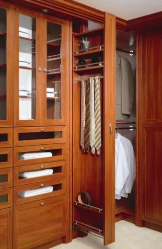 8. Zamontuj we wnętrzu zabudowy dodatkowe akcesoria, typu: wieszaki na krawaty i paski, uchwyt na żelazko czy rurę do odkurzacza. Ułatwi to przechowywanie przedmiotów nietypowych, tworzących nieład w mieszkaniu.