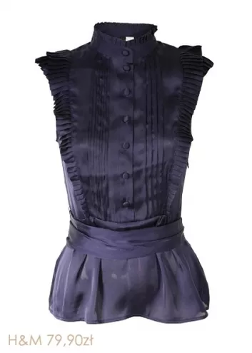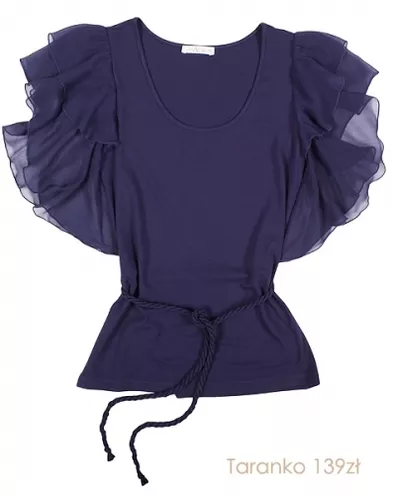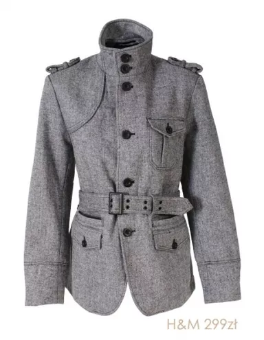 Granatowe bluzeczki z ciekawymi drapowaniami pięknie uzupełniają się z krótkim szarym płaszczem w militarnym stylu. A granatowy beret z szarymi aplikacjami w postaci kwiatów doda uroku każdej buzi. Szare ocieplacze na ręce przydadzą się do bluzki z krótkimi motylkowymi rękawami. Całość prezentuje się bardzo eterycznie.