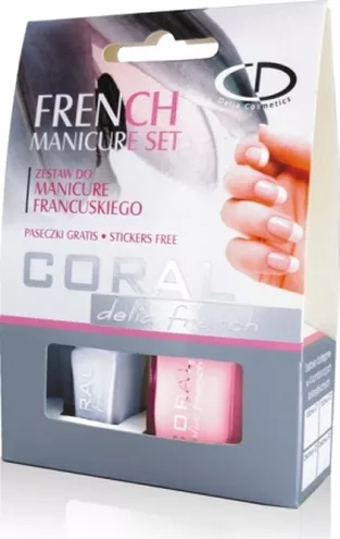 Zestaw lakierów do francuskiego manicure Delia CORAL French zapewnia naturalny i zadbany wygląd dłoniom i paznokciom. W ofercie znajdziemy cztery zestawy kolorystyczne w odcieniach delikatnego beżu