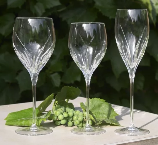 Nowoczesne zastawy stołowe charakteryzują się oszczędnymi zdobieniami i geometrycznymi kształtami poszczególnych elementów. Jeśli posiadasz taki właśnie serwis, nie musisz dobierać do niego kieliszków o klasycznym fasonie. Wybierz szkło z kolekcji Dima marki Villa Italia. Kieliszki wykonane są z najwyższej jakości szkła kryształowego, ręcznie ciętego w roślinny wzór. Kolekcja ta wyróżnia się nowatorską, ale prostą dekoracją. Dzięki niej kieliszki Dima stają się ozdobą stołu. Razem z prostym serwisem tworzą nowoczesne, intrygujące połączenie. Jako ozdoby stołu możesz użyć motywów roślinnych: liści, gałązek lub kwiatów. Przygotowując swój stół musisz pamiętać, że kieliszki ustawiamy według określonych reguł. „Szklaną zastawę stołową, której używamy podczas przyjęć, ustawiamy w kolejności, w jakiej będą używane, zaczynając od prawej strony” – mówi Jolanta Chmielewska. Pamiętać także trzeba, że istnieje wiele rodzajów kieliszków, każdy do innego rodzaju alkoholu. Czerwone wino podajemy w niższym i bardziej pękatym, a białe w wyższym o smukłym kształcie. Do szampana podajemy wysokie, pociągłe kieliszki, a do martini płytkie na długiej nóżce.
