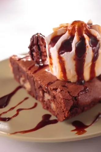 Brownies z lodami czkoladowymi i sosem czekoladowym
