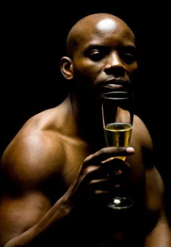 Jak wznosić toast to tylko u boku takiego muskularnego faceta! Najpierw kieliszek schłodzonego szampana, a potem upojna noc spędzona w ramionach ciemnoskórego, umięśnionego koszykarza... mmm Pomarzyć można!