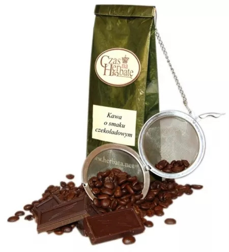 Powszechnie wiadomo, że czekolada poprawia humor i to nie tylko ze względów smakowych. Niewiele jest osób na świecie, które są w stanie oprzeć się czekoladowym pokusom. Czekolada daje szczęście oraz jest uważana za afrodyzjak a to wszystko za sprawa związków w niej zawartych. Jak twierdzą naukowcy jest to efekt działania znajdującej się w czekoladzie kofeiny oraz fenyloetyloaminy, substancji, która znajduje się również w ludzkim mózgu, zwłaszcza u ludzi zakochanych. Powoduje ona miłe odprężenie oraz gamę pozytywnych uczuć od subtelnej szczęśliwości po euforię. Czekolada na poprawę humoru to jest to! Świetnym poprawiaczem humoru może okazać się także filiżanka gorącej kawy czekoladowej. Energetyzujący napój stawia na nogi i dodaje chęci do działania a jego wyborny czekoladowy aromat jeszcze długo po wypiciu powoduje błogi, czekoladowy uśmiech na twarzy. Właśnie takie przyjemne doznania powoduje kawa czekoladowa „Czas na Herbatę”. Cudownie wonna, wyśmienita gatunkowo kawa aromatyzowana powstała na bazie dokładnie wyselekcjonowanych ziaren najwyższej klasy Arabica Excelso. Ten kolumbijski gatunek kawy został uznany za jeden z najlepszych na świecie. Oryginalny smak Arabica Excelso charakteryzuje sie delikatną nutką orzechową tak więc wraz z aromatem czekolady stanowią idealny duet.