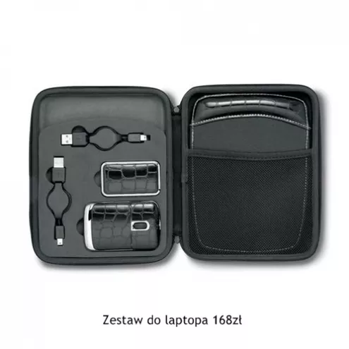 Ekskluzywny zestaw do laptopa. Zawiera 3-portowy rozdzielacz USB, mysz optyczną oraz podkładkę. Wszystko pokryte naturalną skórą. Zamknięte w szykownym etui zmieści się do każdej torby. Kliknij i zobacz: zestaw