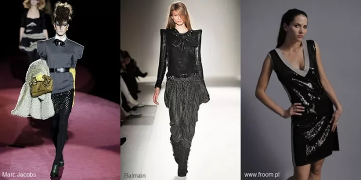 6. Cekiny - połysk w stylu Hollywood gościł na pokazach Gucci, Marca Jacobsa i Balmain. Nie jest propozycją tylko na wieczór. W dzień można nosić błyszczące dodatki, świetnie rozświetlą matową wełnę, futro czy tweed.