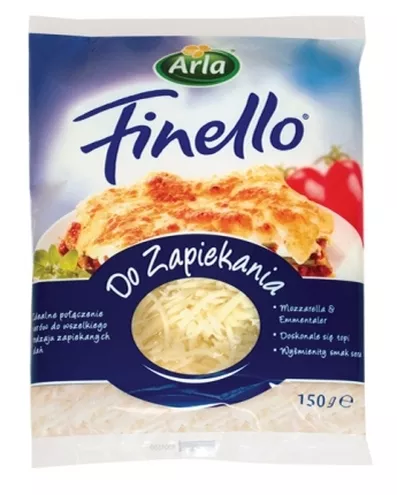• Arla Finello do Zapiekania – duet dwóch delikatnych serów – Mozzarelli i Emmentalera. Mozzarella doskonale się topi, a Emmentaler nadaje potrawom wyśmienity, subtelnie orzechowy smak. Sprawdza się we wszelkiego rodzaju zapiekanych daniach takich jak lasagne, spaghetti, sosy czy zapiekanki.